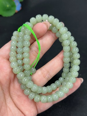 H3366454 Hetian Jade Bead Necklace, Size 11.5, Total Weight 40