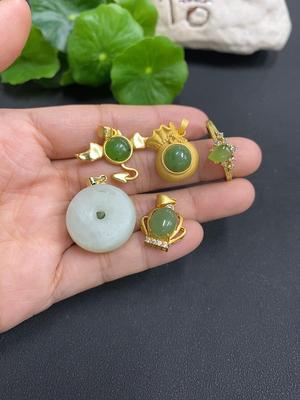 H1226002 Hetian Jade Inlaid Set (Individual Pieces with Veins/Cracks, Non-Gold Inlaid, Total Weight 15.9g)