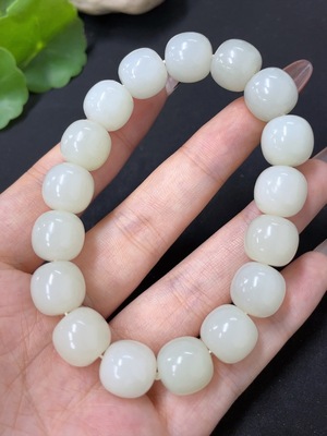 H25894250 Hetian Jade Bracelet, Approx. 12.6mm Beads, Total Weight Approx. 62.1g