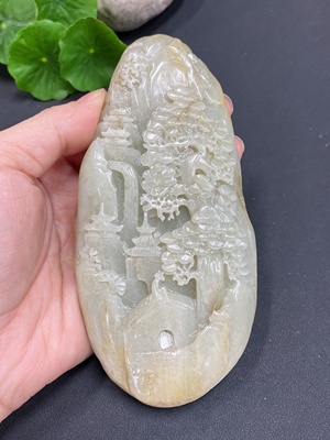 H17910560 Hetian Jade Pendant Landscape Approximately 117.5g Undetermined Skin Color Origin