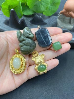H0126138 Hetian Jade inlay piece, some with cracks, adjustable, non-gold inlay, total weight 5.8