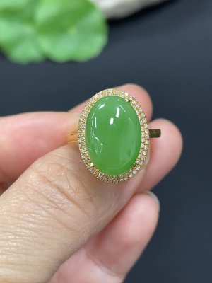 H38471731 Hetian Jade Inlaid Ring Size 15 Total Weight Approx.6g 18k Non-Diamond