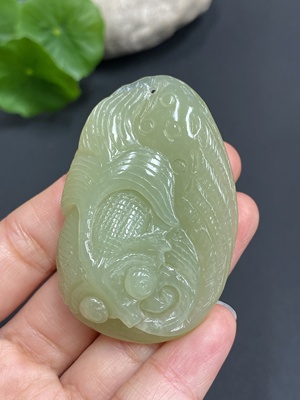 H08847218 Hetian Jade Pendant 'Abundance Year After Year' approx. 27.99g (incl. cord)