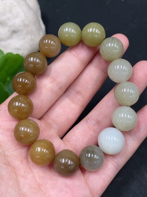 H27129296 Hetian Jade Bracelet, Approx. 13.7 mm Beads, Total Weight Approx. 62.9g