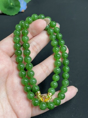H36311605 Hetian Jade Jasper Bead Necklace, approx. 7.7mm, total weight approx. 47g, non-gold