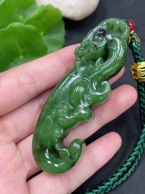 H36296303 Hetian Jade Jasper Handheld Carving "Chi Dragon
