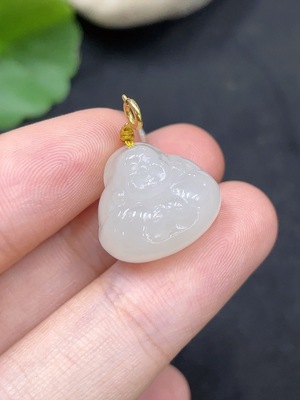 H36227325 Hetian Jade Pendant - Buddha with 18K Gold Clasp, Total Weight Approx. 3.5g