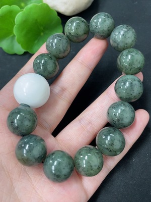 H40724808 Hetian Jade Bead Bracelet, Approx. 15.6mm, Total Weight Approx. 95g, Non-Hetian Jade Beads Included