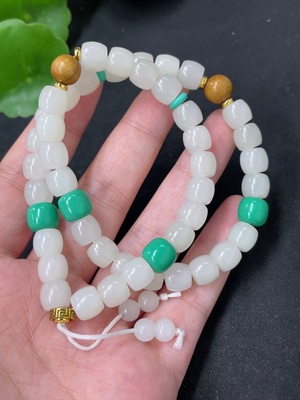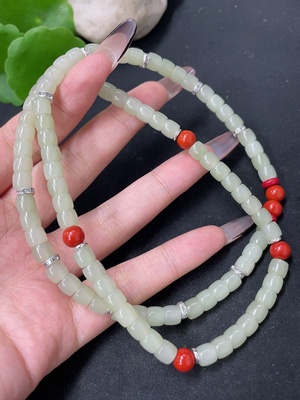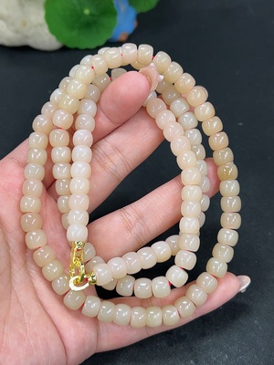 H40687354 Hetian Jade Bead Chain Approximately 5.8mm Non-Gold Total Weight About 42.5g