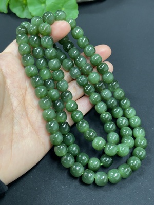 H40726064 Hetian Jade Bead Necklace, approx. 7.7mm, total weight approx. 43.2g, non-Hetian Jade beads, non-gold