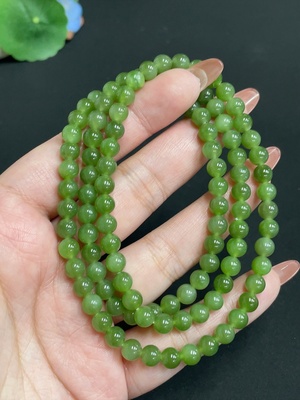H33859480 Hetian Jade Bead Necklace, Approx. 5.8mm, Total Weight Approx. 35.7g