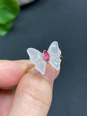 H16766838 Hetian Jade Inlaid Ring, 18k Gold, Size 15.5, Total Weight Approx. 2.3g