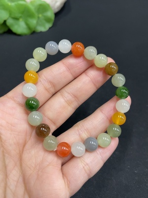 H34072841 Hetian Jade Bracelet, approx. 7.7mm, total weight approx. 17.5g, red beads not Hetian Jade