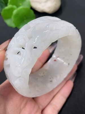 H39674026 Hetian Jade Carved Flower Bracelet Size 62 Total Weight Approx. 104.3g