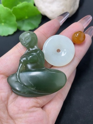 H40776146 Hetian Jade Pendant Yellow Jambhala With Non-Hetian Jade Beads Set with Jadeite and Garnet Total Weight (Including Chain): 66.1g