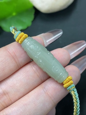 H39654005 Hetian Jade Handheld Carving "Dragon Dominates the World" with Non-Hetian Jade Beads