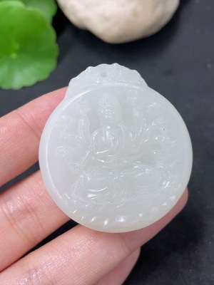 H40722636 Hetian Jade Pendant - Akashagarbha Bodhisattva, total weight approx. 42.9g, with non-Hetian Jade beads