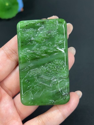 H39675397 Hetian Jade Pendant - Landscape Plaque