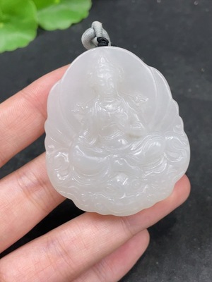H37389923 Hetian Jade Pendant Guanyin Total Weight (including rope) 43.4g