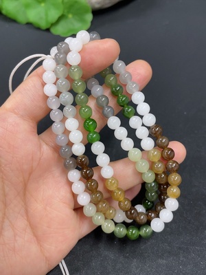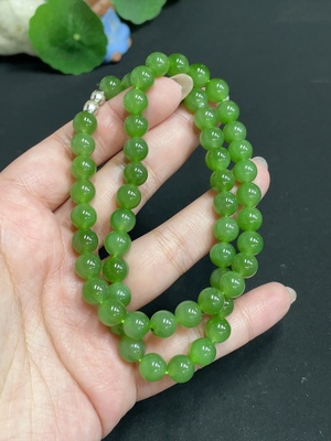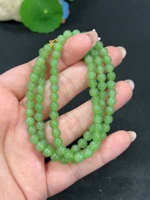H40777099 Hetian Jade Beaded Necklace, Approx. 5.7mm, Total Weight Approx. 33.7g, Contains Other Mineral Components