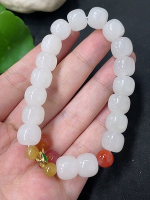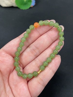 H39627231 Hetian Jade Bracelet, approx. 6.2mm, total weight approx. 10.8g, no imprint, 18k gold content, non-Hetian Jade matching beads