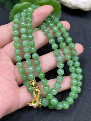 H32770657 Hetian Jade Bead Necklace, Approx. 4.8mm, Non-Gold-Inlaid, Total Weight Approx. 16.6g