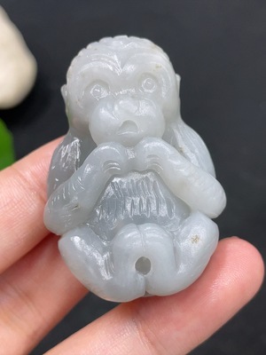 H30561349 Hetian Jade Handheld Ornament - Spirit Monkey (Total weight: approx. 48.6g)