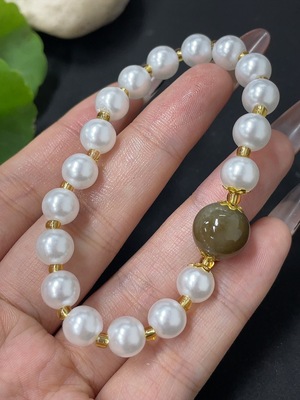 H39603014 Hetian Jade Single Bead Bracelet with Non-Hetian Jade Beads, Total Weight Approx. 7.6g, Non-Gold
