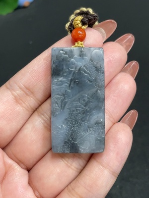 H34054645 Hetian Jade Pendant Landscape Total Weight Approx. [with Rope] 21.7g