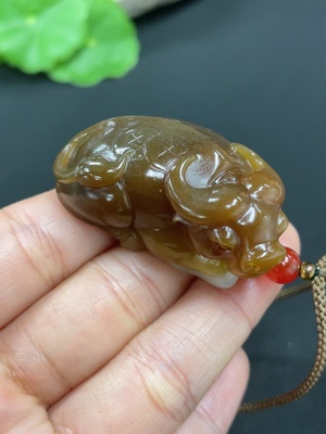 H40701132 Hetian Jade Pendant Cattle Total Weight (including rope) approx. 33.1g Matching beads not Hetian Jade