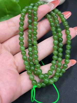 H34072249 Hetian Jade Bracelet, approx. 4mm beads, non-gold inlaid, total weight approx. 15.5g