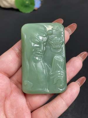 H30560750 Hetian Jade Handheld Piece - Zhong Kui, Undetermined Skin Color Origin, Contains Other Mineral Components, Total Weight Approximately 109.3g