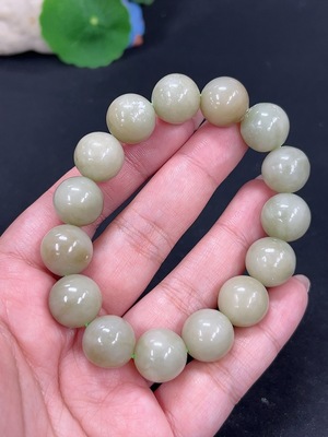 H39574013 Hetian Jade Bracelet, approx. 8mm beads, total weight approx. 22g, containing other mineral components