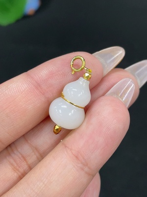 H39562536 Hetian Jade Inlaid Pendant Gourd Total Weight Approx. 2.8g No Imprint 18k in Gourd Center Non-Gold Elsewhere