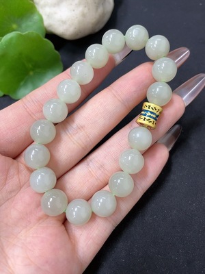 H34063178 Hetian Jade Bracelet, approx. 10.5mm beads, total weight approx. 40.5g