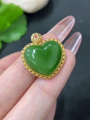H39602714 Hetian Jade Inlaid Pendant Heart Non-Diamond 18K Gold Total Weight Approx. 3.8g