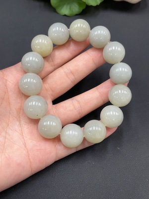 H35130225 Hetian Jade Bracelet, approx. 11.8mm beads, total weight approx. 42.6g
