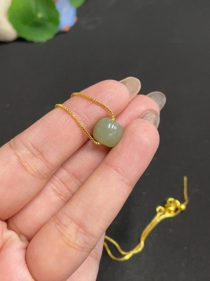 H36313184 Hetian Jade Inlaid Pendant Single Bead Approx. 10mm Total Weight [Including Chain] 3.8g Pendant Gold Content 58% Rest Non-Gold