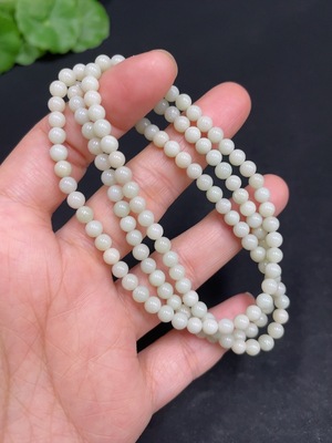 H34073497 Hetian Jade Bead Necklace approx. 4.1mm Total Weight approx. 14.4g