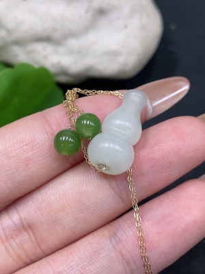 H31672130 Hetian Jade Pendant with 18K Gold Inlay Total Weight Approx. (Including Chain) 3.1g