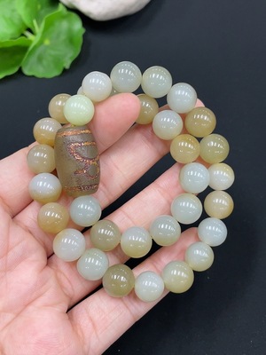 H35174078 Hetian Jade Bracelet, Approx. 11.6 mm Beads, Total Weight Approx. 45.7g