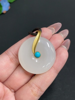 H26042625 Hetian Jade Inlaid Pendant, Peace Buckle