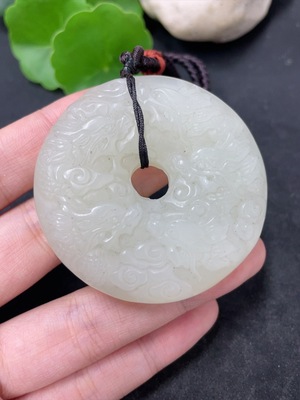 H40750592 Hetian Jade Pendant Dragon Button