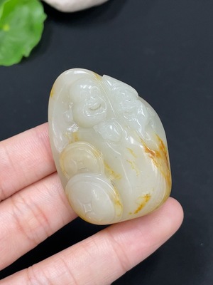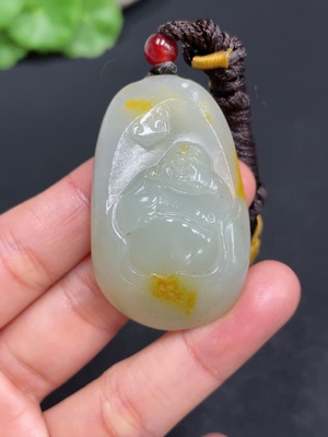 H37365690 Hetian Jade Pendant - Buddha, Total Weight (Including Rope): Approx. 28g, Undetermined Skin Color Origin, Matching Beads Not Hetian Jade