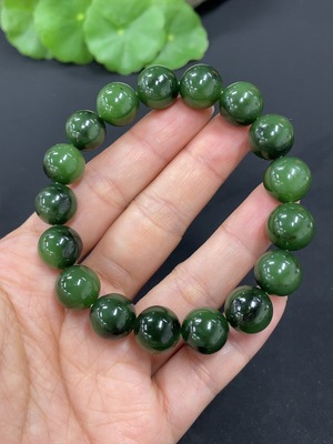 H33931861 Hetian Jade Bracelet Approx. 11.7mm Beads Total Weight About 46.1g Containing Other Mineral Components