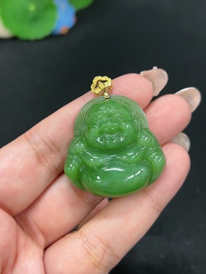 H40722880 Hetian Jade Jasper Inlaid Pendant Buddha Total Weight Approx. 21.3g No Stamp 18k Gold Content