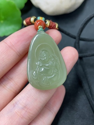 H40686985 Hetian Jade Pendant, Buddha, Total Weight (including rope) Approx. 13.2g, Beads Not Hetian Jade