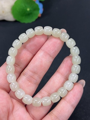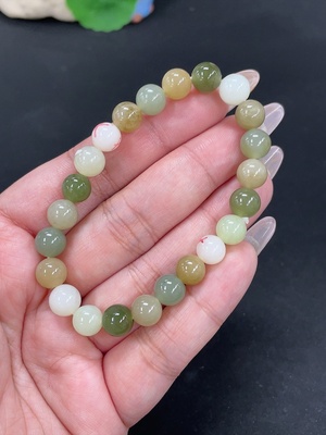 H39606738 Hetian Jade Bracelet, Approx. 8mm Beads, Total Weight About 17.9g, Non-Hetian Jade Beads Included, With Impurities