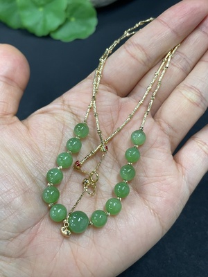H40765297 Hetian Jade Jasper Bead Necklace, Approx. 5.9mm, Marked in Red Non-Gold, Rest 18k Gold, Total Weight Approx. 6.1g