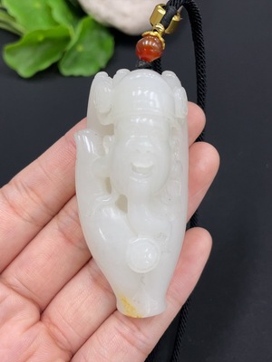 H27073241 Hetian Jade Pendant - God of Wealth, undetermined skin color origin, total weight approx. (including rope) 54.8g